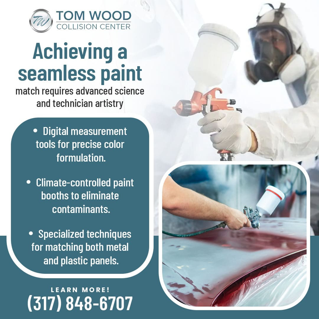 Indianapolis, IN – Tom Wood Collision Center has released an overview of its advanced paint matching procedures, highlighting how modern auto body shops deliver seamless finishes after collisions. The announcement focuses on how digital technology and technician training combine to eliminate mismatched panels and restore vehicles to their pre-accident appearance.